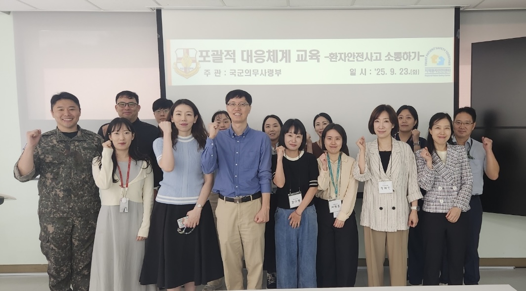 - 지역환자안전센터 활동 지원의 일환으로, 국군의무사령부 및 국군병원 소속 보건의료인 대상 환자안전사고 소통하기 및 동료지지자 양성 교육을 진행하여 사고 이후 대응·회복 지원 체계의 현장 정착 도모