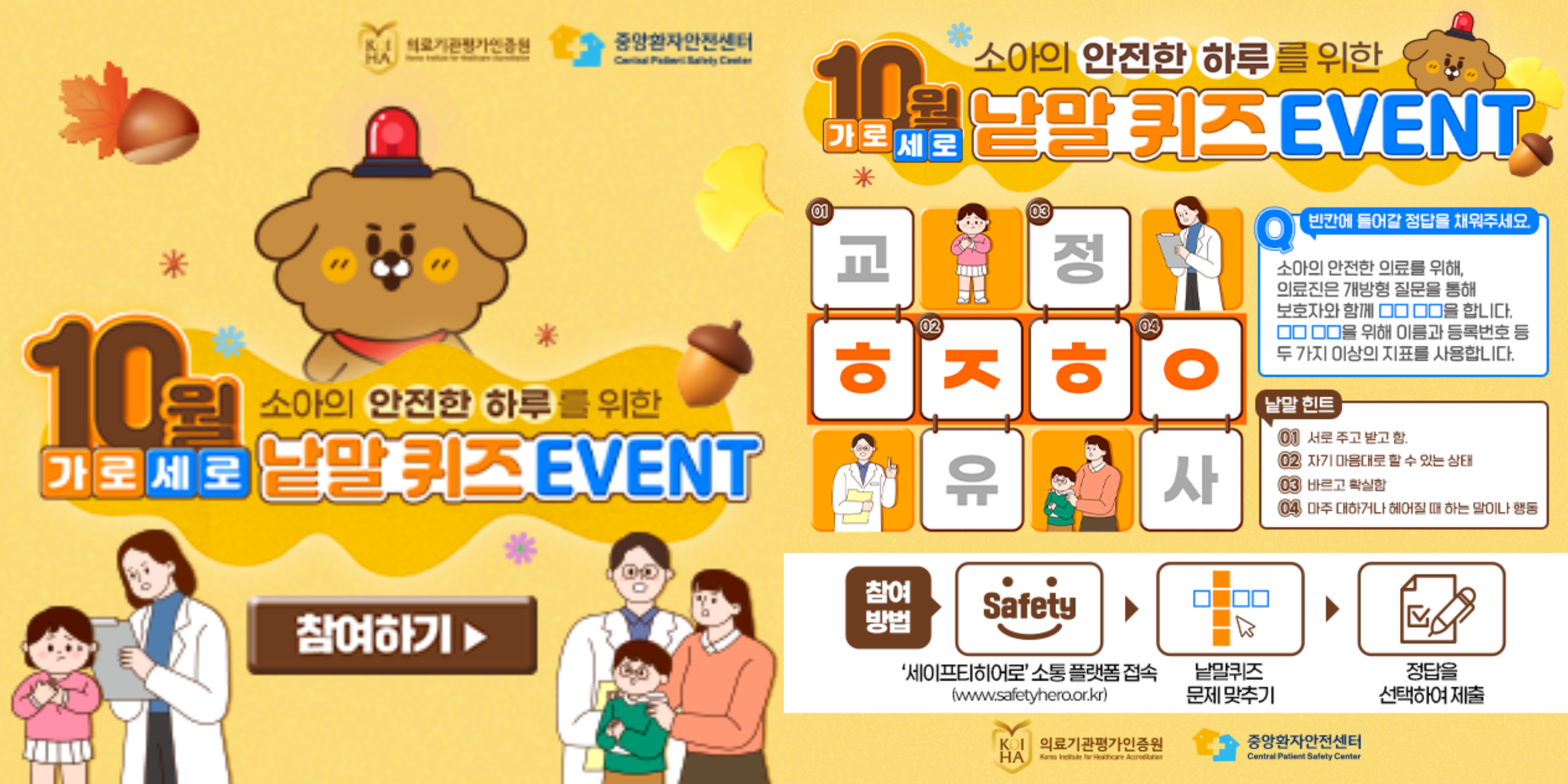 - 소아의 안전한 하루를 주제로, ‘환자 확인’의 중요성을 알리기 위한 낱말 퀴즈 이벤트 진행